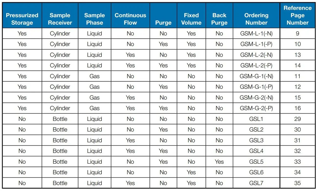 Twee systeemtypes maken bemonstering in twee soorten containers mogelijk: druk houdende metalen cilinders zoals in de Grab Sample Module (GSM) of niet-drukhoudende glazen of polyethyleen flessen zoals in de Liquid Only Sampling Module (GSL).