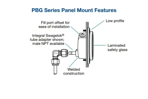 Panel-Builder-Gauges / drukmeters voor panelen (PBG-serie). Zij bewaken vacuüm- en systeemdrukken tot 15.000 psi / 1000 bar, met een wijzerplaat van 2,5 inch die past in een standaard paneelgat van 2 9/16 inch. Kenmerken zijn onder andere 316 roestvrijstalen componenten, een met glycerine gevulde behuizing en een goed beschermd ontwerp.